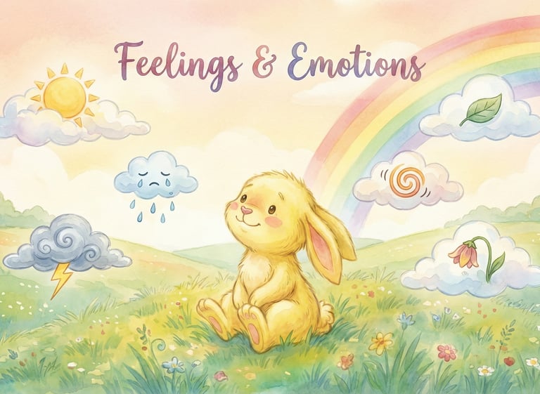 Through gentle animal characters and cozy stories, kids see that emotions like anger, sadness, joy, and worry are natural and always changing. With playful images — from storms that pass to sunshine that returns — the stories remind children that every feeling has a place.