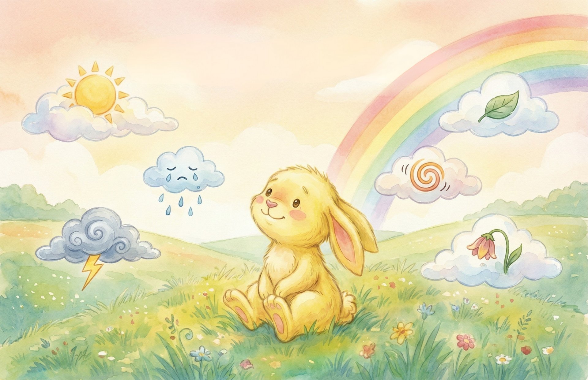 Stormy feelings swirl inside — until Benny remembers his cloud breath. With each whoooosh, the storm softens into sunshine. Try blowing calm clouds too.