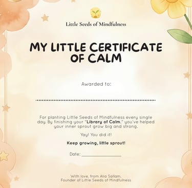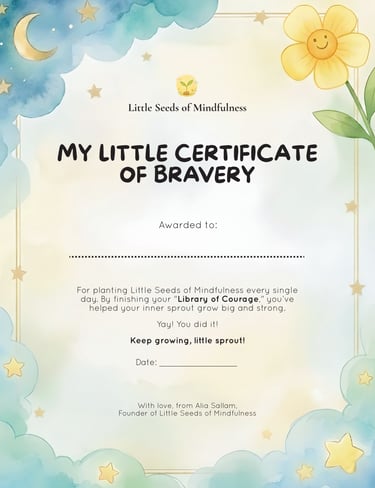 Download your "My Little Certificate of Bravery" to celebrate your child’s transition from a little seed to a blooming mindful sprout. Print it out, write their name, and hang it somewhere special to remind them of the courage they carry inside.
