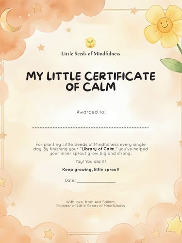 Download your "My Little Certificate of Peace" to celebrate your child’s transition from a little seed to a blooming mindful sprout. Print it out, write their name, and hang it somewhere special to remind them of the peace they carry inside.